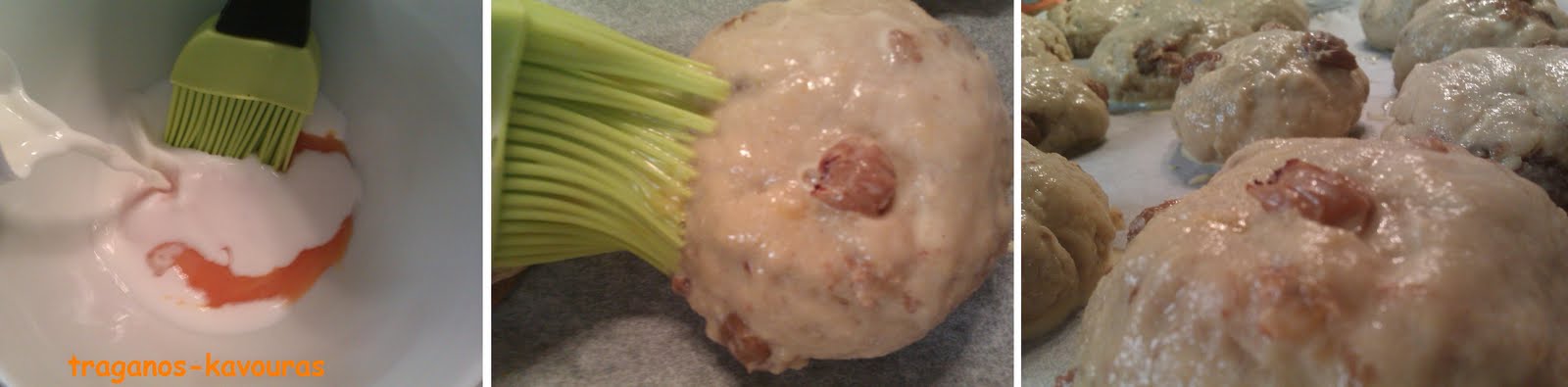 Σε ένα μπολ ανακατέβουμε έναν κρόκο με γάλα, για να αλείψουμε τα ψωμάκια.