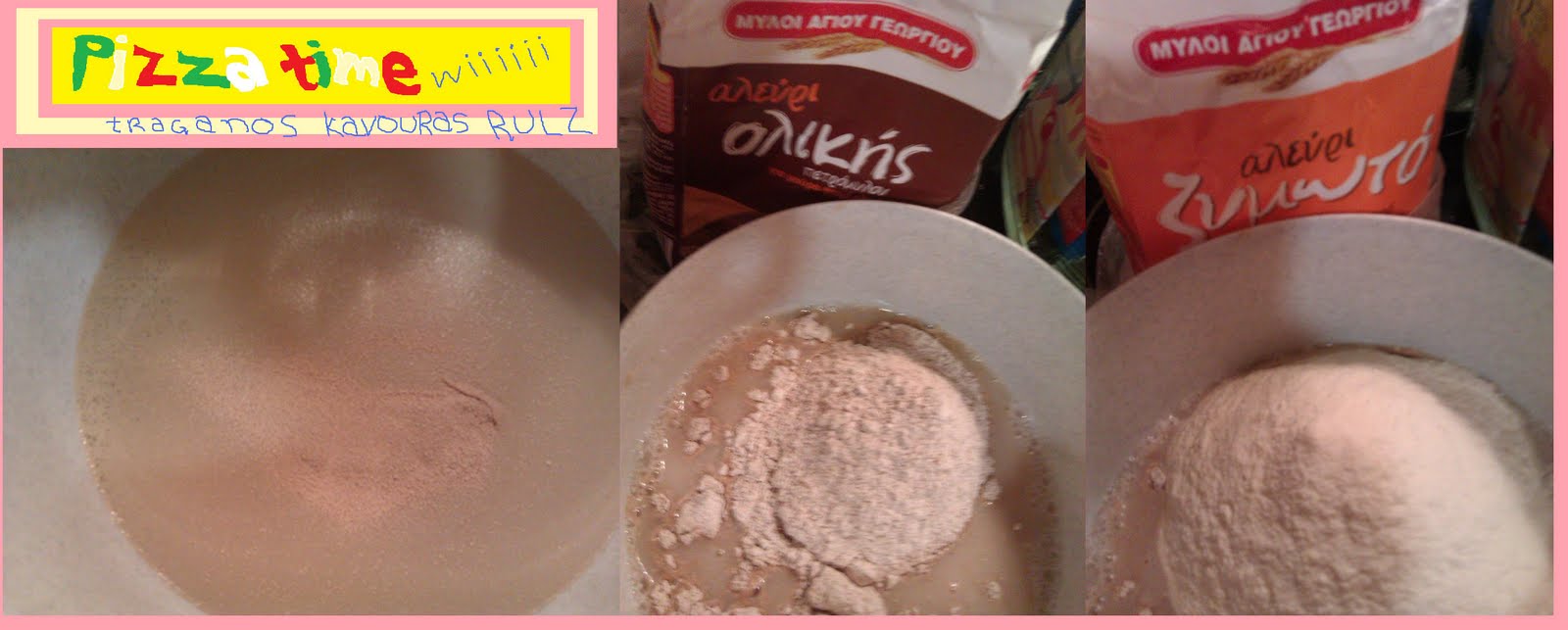 Ρίχνουμε το νερό στη λεκάνη και μέσα σε αυτό ανακατεύουμε με ένα κουτάλι την ξηρή μαγιά. Προσθέτουμε όλα τα υπόλοιπα υλικά αφήνοντας το αλεύρι για το τέλος. Ρίχνουμε σιγά-σιγά το αλεύρι, ανακατεύοντας. Μόλις αρχίσει να γίνεται ζυμάρι, ανάβουμε το φούρνο στους 50 βαθμούς στον αέρα και βάζουμε στο μίγμα και τις σταφίδες συνεχίζοντας το ανακάτεμα με τα χέρια και ρίχνοντας το υπόλοιπο αλεύρι ενώ ζυμώνουμε και ανά διαστήματα.