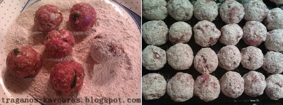 Στρώνουμε αντικολλητικό χαρτί σε λαμαρίνα ή σε ταψί. Πλάθουμε μικρές μπαλίτσες και τις τοποθετούμε στο ταψί, αφήνοντας απόσταση μεταξύ τους. Είναι σίγουρο πως η υγρασία που έχουν κρατήσει οι σταφίδες θα μας σπάει λιγάκι τα νεύρα γιατί το ζυμαράκι κάποιες φορές θα κολλάει πολύ. Καλό είναι να έχουμε ένα μπολάκι με αλεύρι δίπλα μας για να βάζουμε που και που στα χέρια μας.
